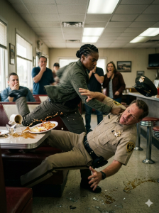 I had trained to endure interrogations by foreign intelligence agencies using sleep deprivation, cold exposure, and sensory overload. A bruised sheriff sitting across from me in a brightly lit room wasn’t going to shake me. I held his gaze, reading the details—the faint twitch in his left eye, the shallow breathing, the slight shift in posture. He was projecting control, but underneath it, he was scrambling. He knew he had crossed a line in that diner. Now he was trying to bury it.