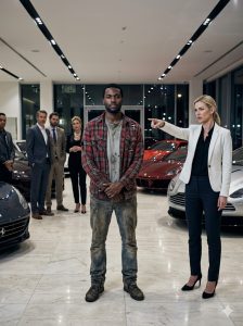 The air inside the luxury showroom felt thick, weighed down by wealth, privilege, and the silent judgment of everyone present. The couple seated in the $200,000 sports car had stopped their quiet conversation entirely. They stared at me with a mix of curiosity and thinly veiled disdain, waiting for the inevitable ending—the moment the dirty, out-of-place Black man in the ruined flannel would be removed so they could return to discussing leather trims and acceleration times.