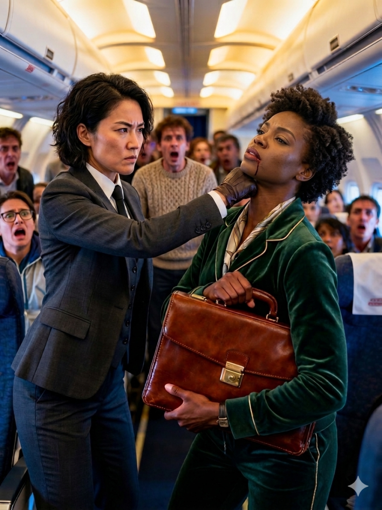 And I’m telling you one final time that you don’t give orders here, Madison fires back. People like you need to learn respect for authority. Respect for authority, Diana echoes, her eyebrow lifting slightly. That’s interesting — because you’re about to learn what real authority looks like. Madison laughs harshly, the sound scraping through the recycled cabin air. Real authority from someone who probably got her job through a diversity quota. Don’t make me laugh.