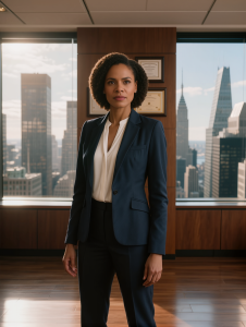 A sleek black town car rolls to a stop at the departure curb. Diana Washington steps out, her charcoal business suit immaculately fitted, her leather portfolio held firmly in her manicured hands. At 38, she carries herself with the calm assurance of someone at home in boardrooms and high-pressure negotiations.