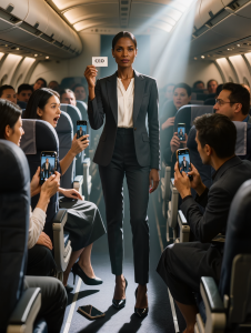 Diana carefully draws her wrist free, her movements controlled despite the fury building behind her eyes. You just made a very serious mistake. Did I? Madison straightens to her full height, intoxicated by the power she believes she holds. Because from where I stand, you’re just another entitled passenger who thinks skin color entitles them to special treatment.