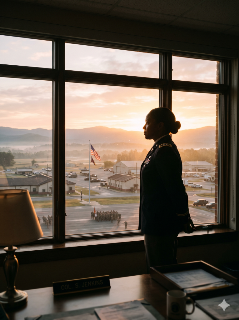 As she looked out the window, watching the sunlight stretch across the base, she took a slow, steady breath.
