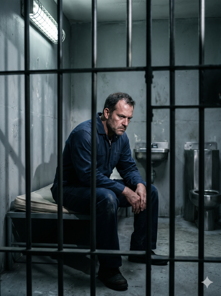 Now his world was reduced to a cell. Four walls that offered nothing but time. Time to sit in silence. Time to think. Time to replay every moment that had led him here, to this outcome, to this unavoidable reality.