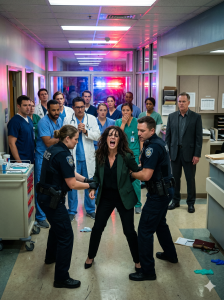 As the officers dragged a sobbing, humiliated, and shouting Diane into the busy hospital hallway—past rows of staring staff and patients—Ryan finally turned toward me.