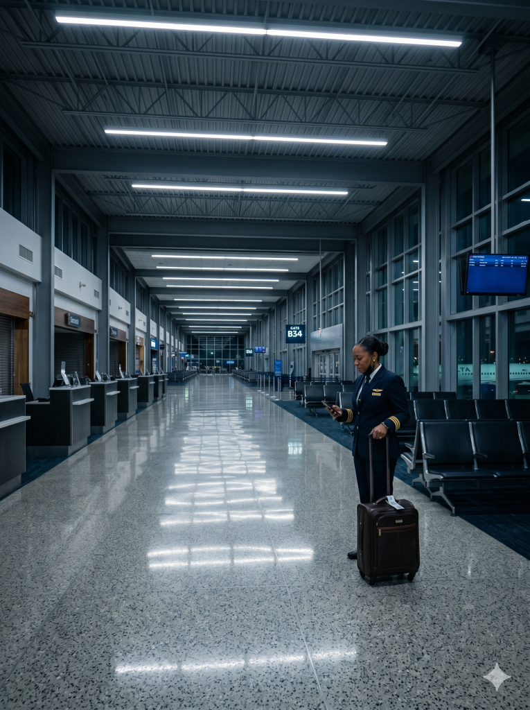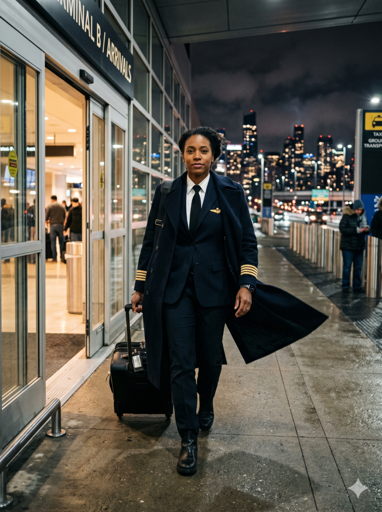 I was beyond tired. My body ached with that deep, bone-level exhaustion that comes from guiding a 150-ton machine through turbulent skies for a living. I’m thirty-four years old, a Black woman from a small, dust-filled farming town in Georgia, and I’m a commercial airline captain for a major U.S. carrier.