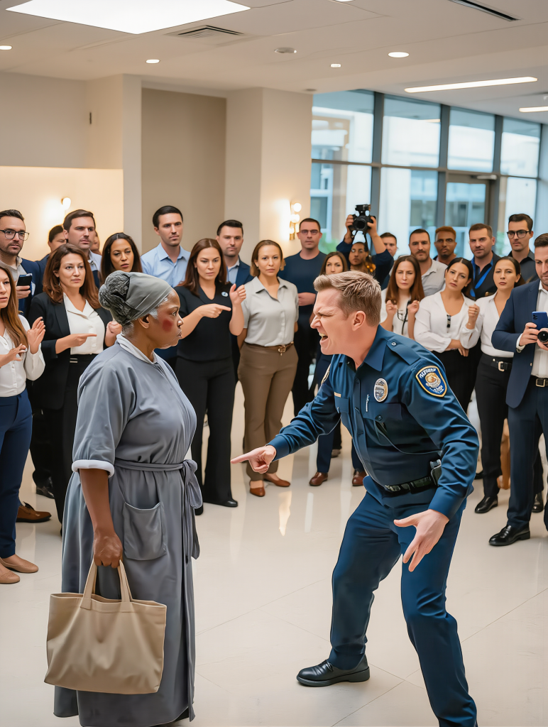 Phones came out. Some smiled. Brad’s voice grew louder. “I don’t have time for this. Move.” He shoved her cart roughly, and supplies scattered across the polished marble floor. “Clean that up and get out.”